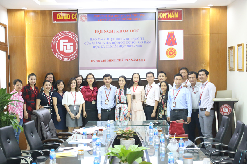 Nhằm nâng cao năng lực của giảng viên trong việc bổ sung kiến thức thực tế vào bài giảng, và theo Quyết định số 739/QĐ-ĐHNT-TCHC ngày 18/12/2008 của Trường Đại học Ngoại thương về bồi dưỡng và đi thực tế, giảng viên Bộ môn Cơ sở Cơ bản đã đi thực tế tại các cơ quan, doanh nghiệp trong năm học 2017 - 2018. Để có cơ sở đánh giá việc hoàn thành công tác bồi dưỡng và đi thực tế của giảng viên, Bộ môn Cơ sở Cơ bản đã tổ chức các buổi Hội nghị báo cáo kết quả đi thực tế của giảng viên trong các ngày 04/5/2018, 11/5/2018, 18/5/2018 và 01/6/2018. Tham dự Hội nghị có sự hiện diện của PGS, TS Nguyễn Thị Thu Hà - Phó Giám đốc Cơ sở II, ThS Mai Hạnh Nguyên – Phó Trưởng Ban QLKH & HTQT, Ban Chủ nhiệm Bộ môn cùng toàn thể giảng viên Bộ môn Cơ sở Cơ bản.