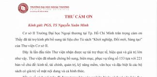 Thư cảm ơn PGS,TS Nguyễn Xuân Minh