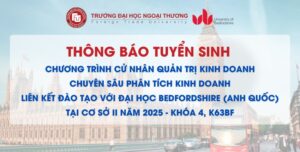 TB tuyển sinh Chương trình Cử nhân QTKD chuyên sâu Phân tích Kinh doanh liên kết đào tạo với Đại học Bedfordshire (Anh Quốc) tại Cơ sở II năm 2025 – Khóa 4, K63BF 03/04/2025