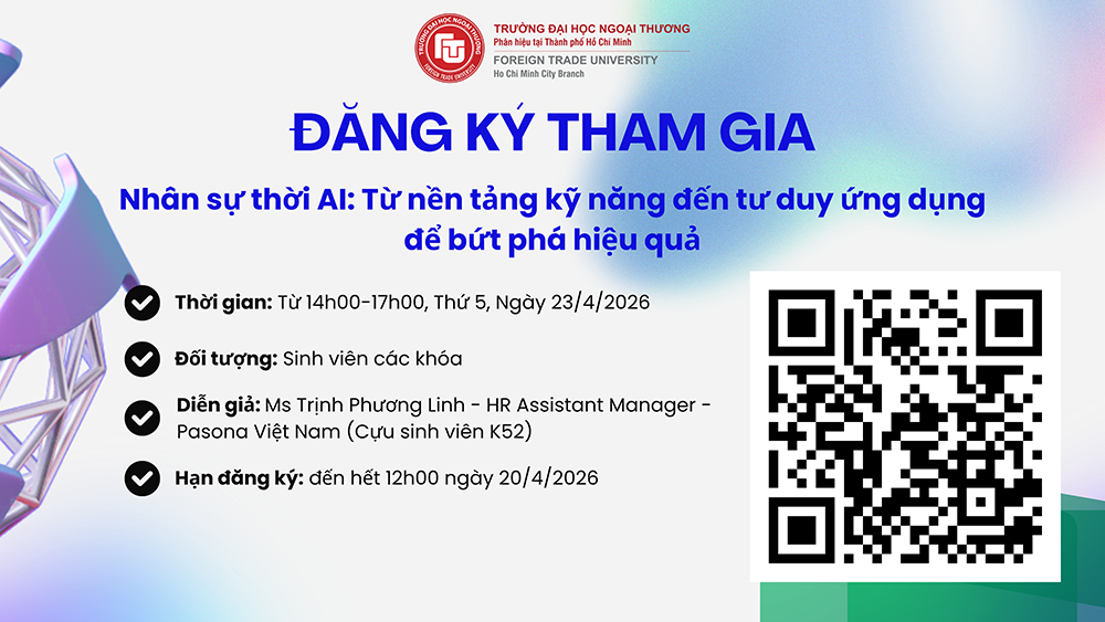 Phân hiệu Trường Đại học Ngoại thương tại TP. Hồ Chí Minh tổ chức buổi tư vấn nghề nghiệp, kỹ năng trong Dự án hỗ trợ người học SMI (Sharing – Mentoring – Inspiring) chủ đề: “Nhân sự thời AI: Từ nền tảng kỹ năng đến tư duy ứng dụng để bứt phá hiệu quả”: