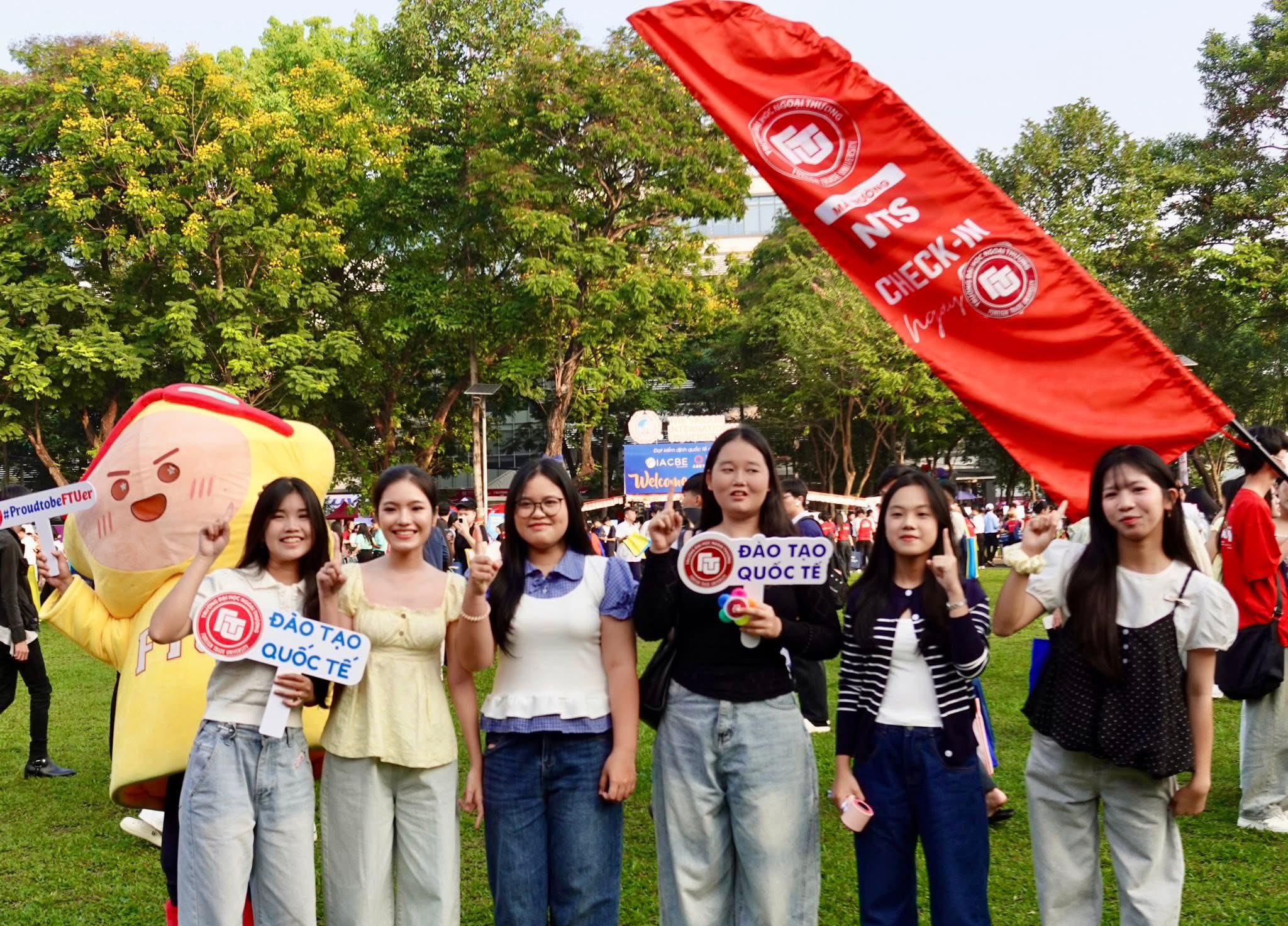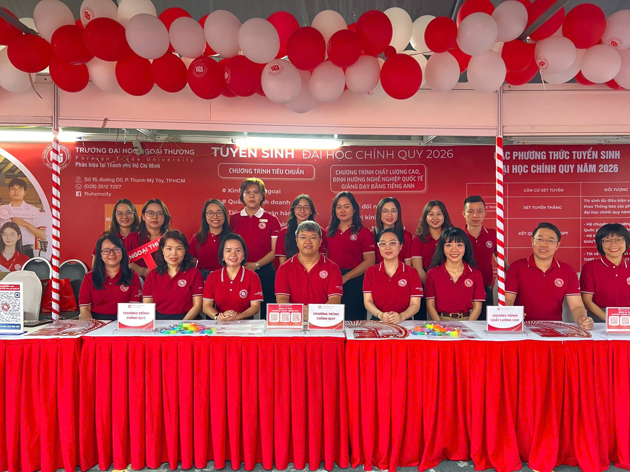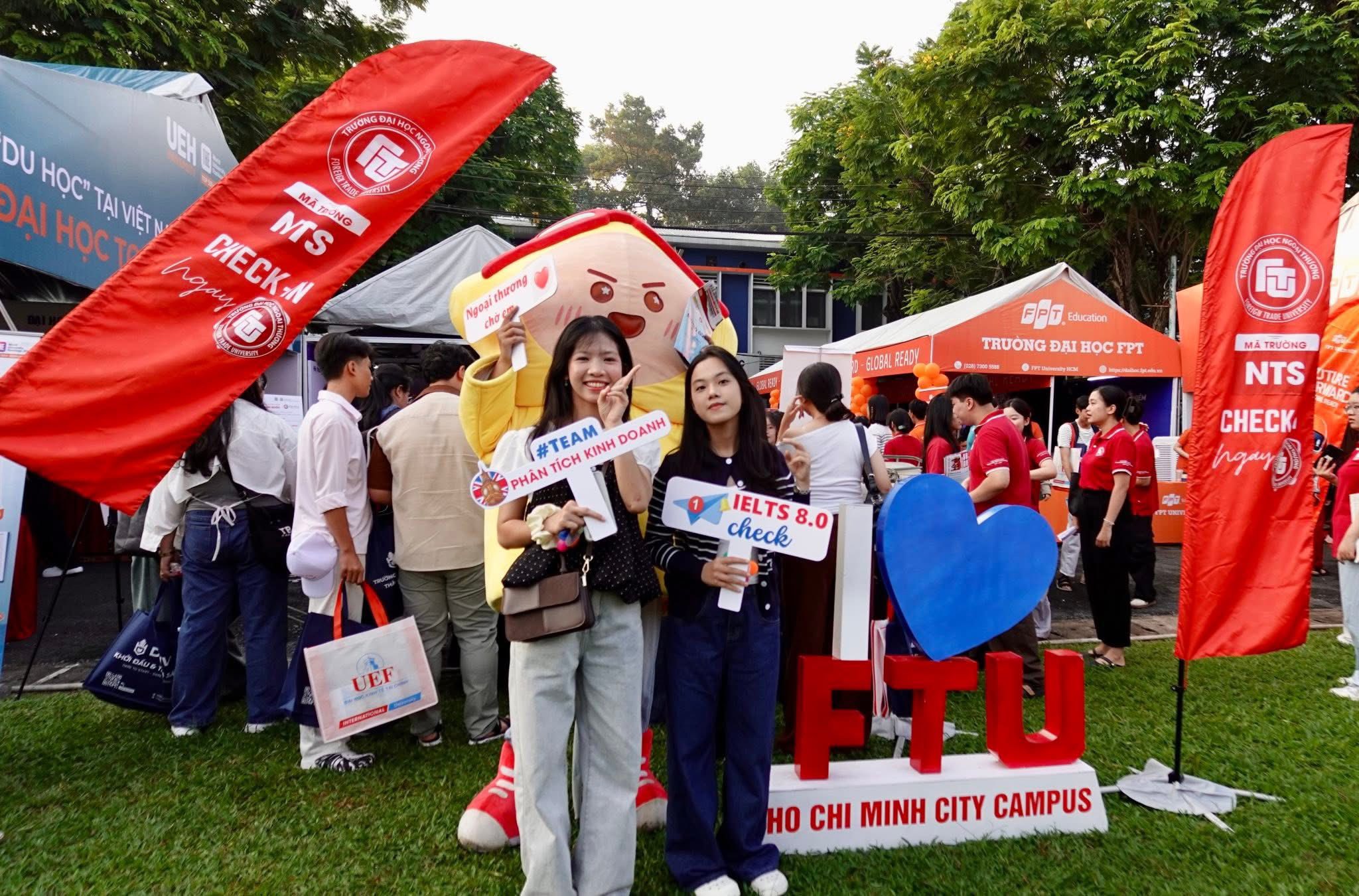 (The Advisory Board of Foreign Trade University – HCMC Branch took a photo with students at the booth)