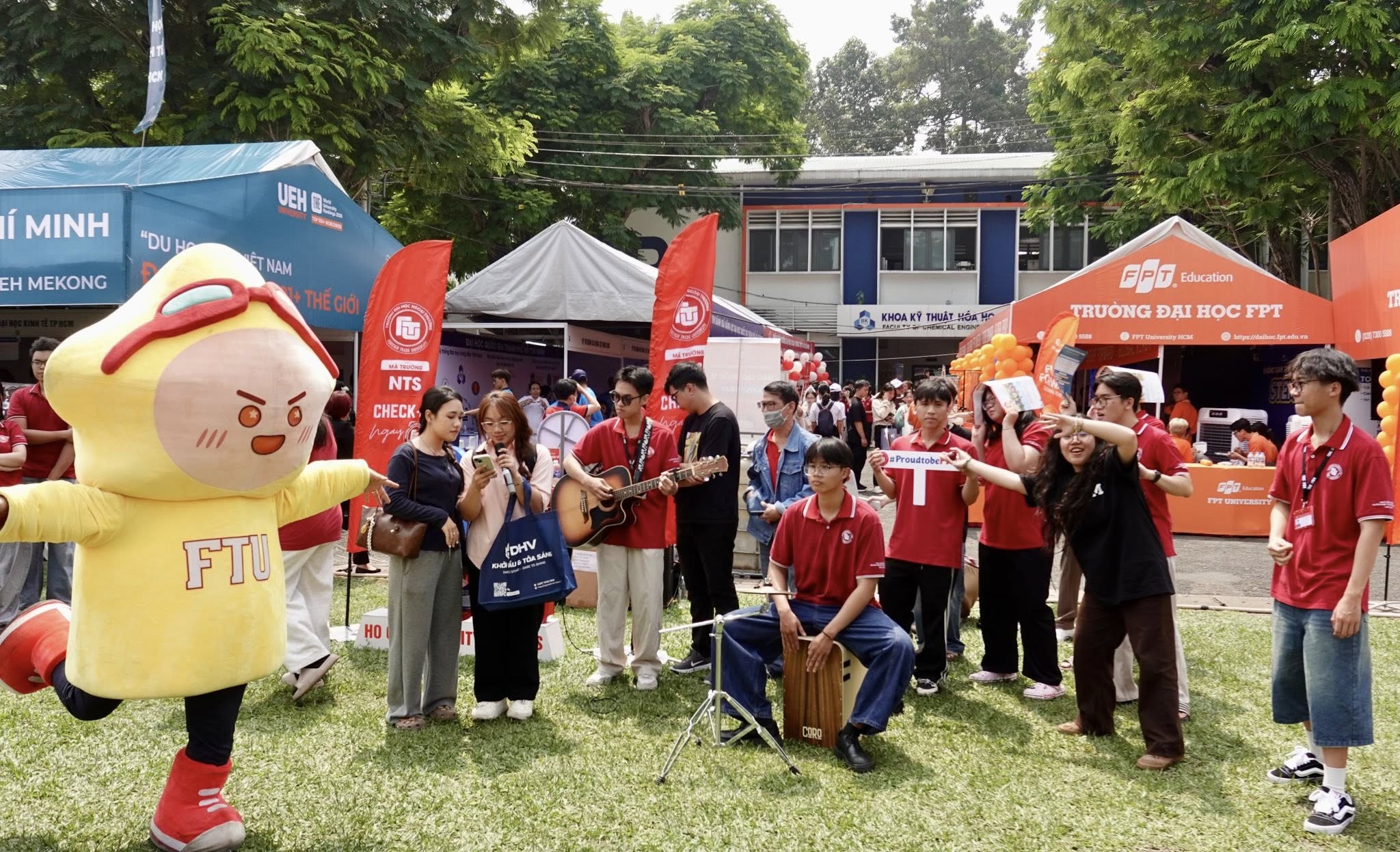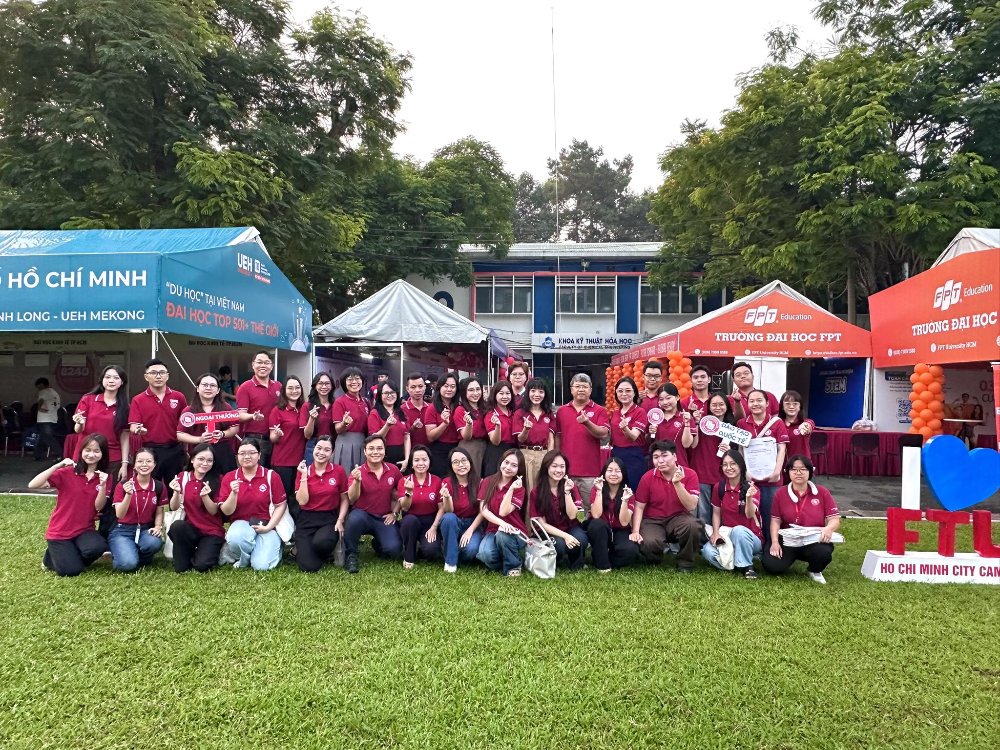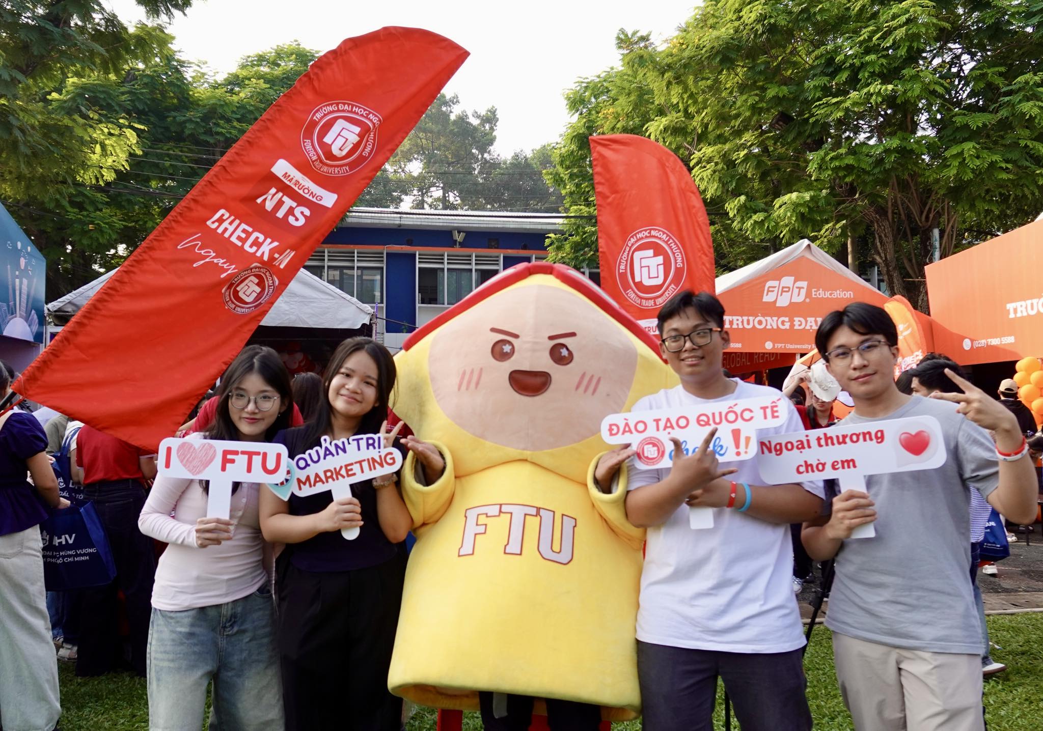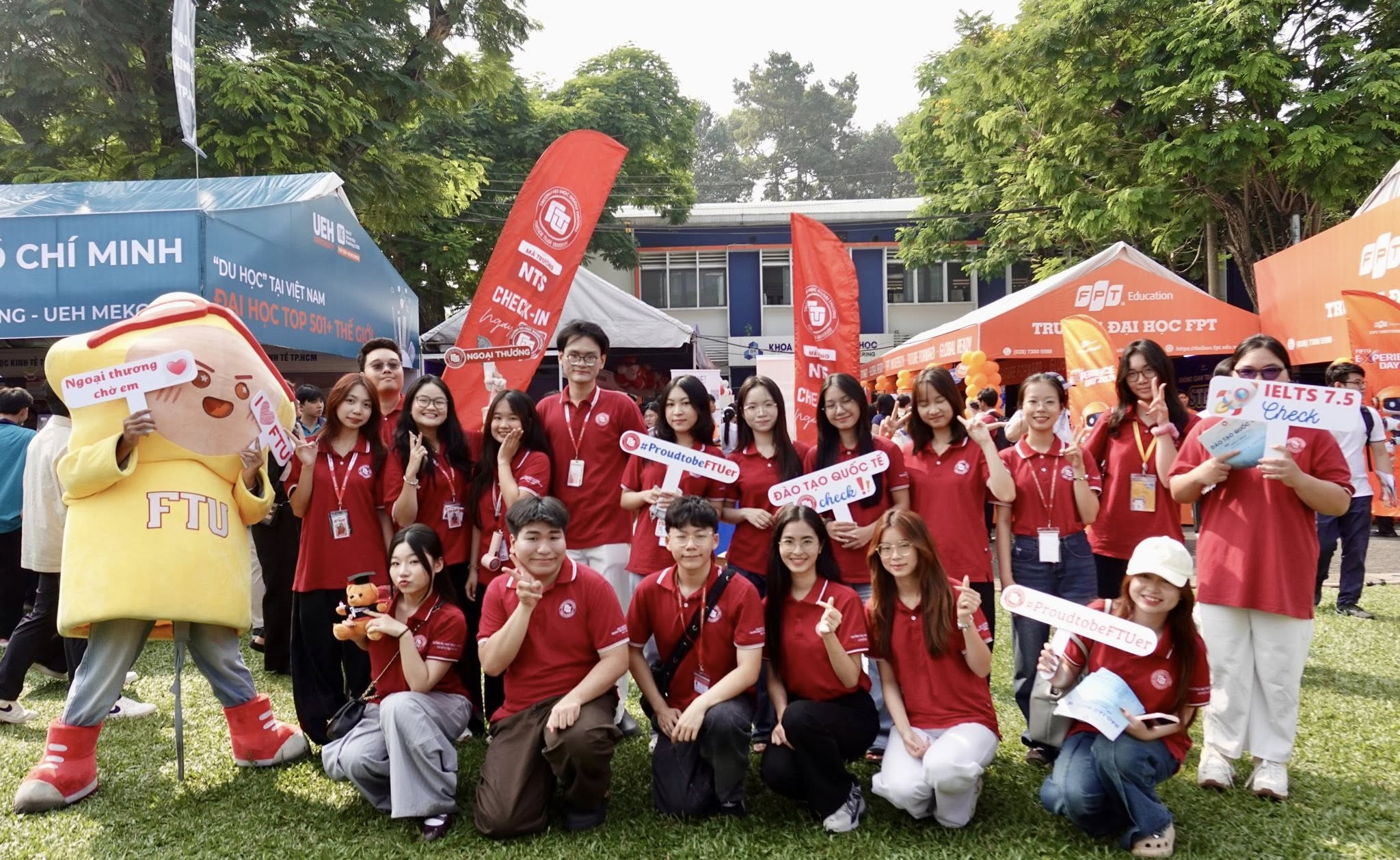 (The Advisory Board of Foreign Trade University – HCMC Branch took a photo with students at the booth)
