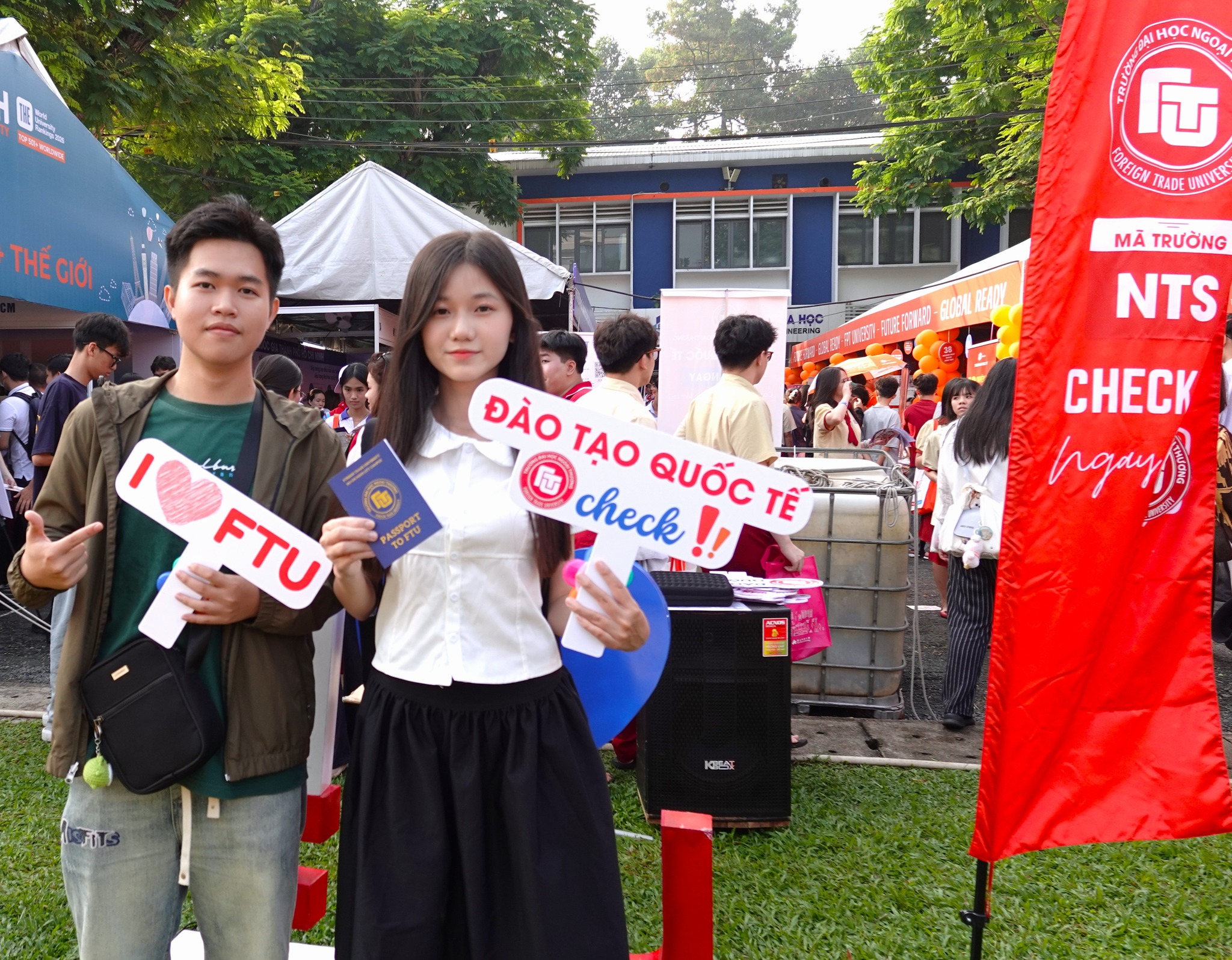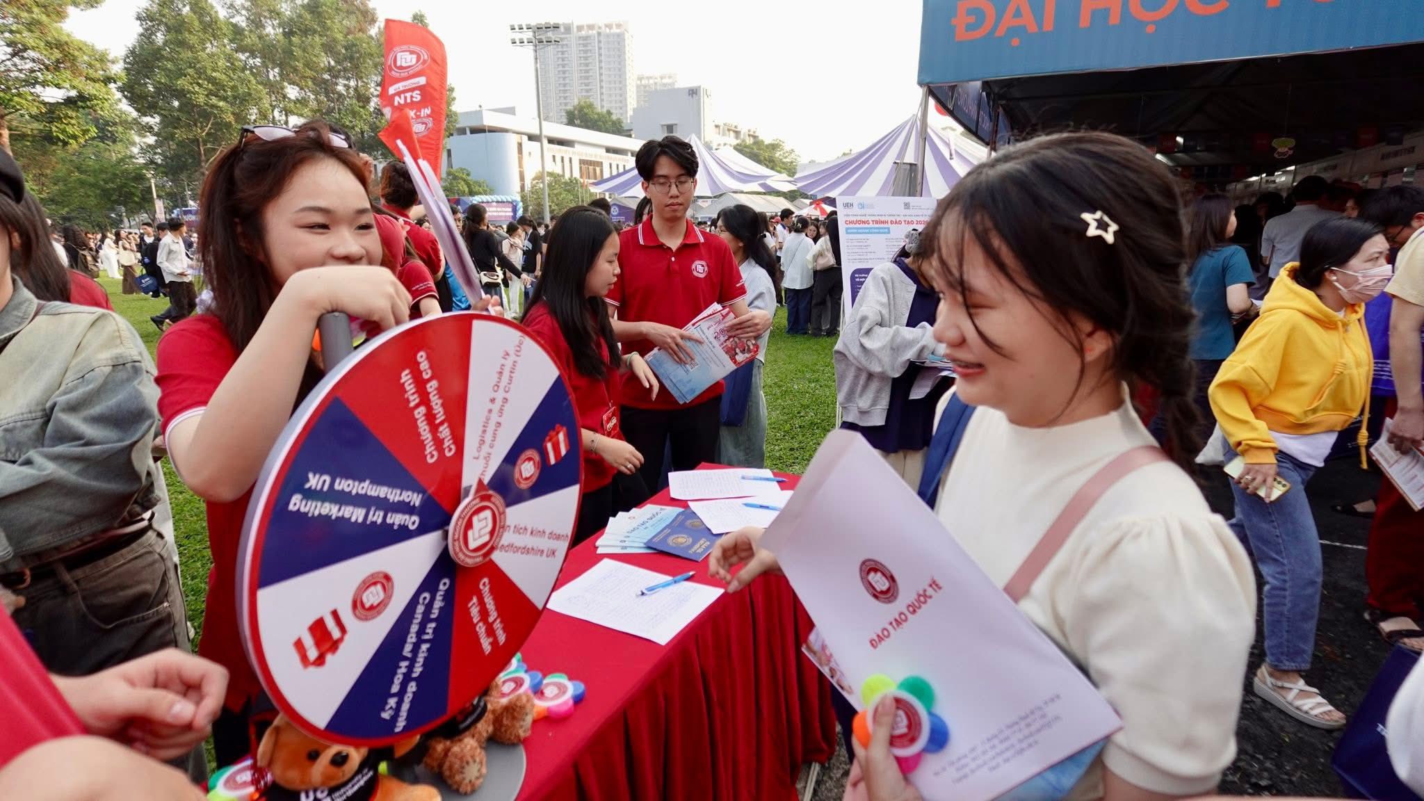 Bên cạnh hoạt động tư vấn, gian hàng còn mang đến không khí sôi động với các hoạt động giao lưu và minigame hấp dẫn. Nhiều bạn học sinh hào hứng khi nhận được những phần quà mang đậm dấu ấn Ngoại thương như sổ tay “Passport to FTU”, bút highlight và các vật phẩm lưu niệm dễ thương.