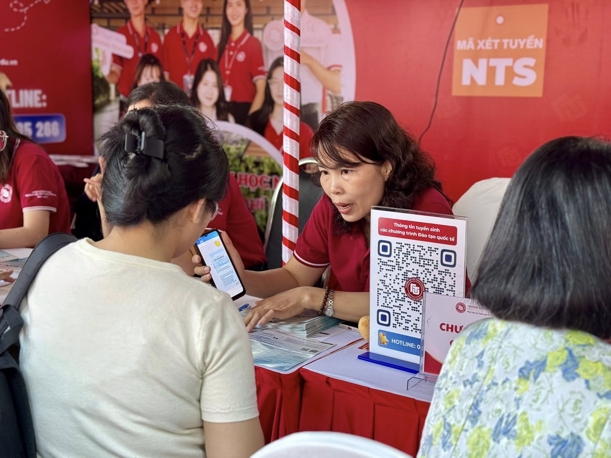 Tại gian hàng, quý thầy cô đã trực tiếp giới thiệu và giải đáp nhiều thắc mắc liên quan đến các chương trình Đào tạo quốc tế, điều kiện tuyển sinh cũng như lộ trình học tập với cơ hội nhận bằng từ các trường đại học đối tác quốc tế. Nhiều phụ huynh và học sinh đặc biệt quan tâm đến cơ hội xét tuyển khi có chứng chỉ IELTS từ 5.5 trở lên, cùng định hướng học tập trong môi trường quốc tế và cơ hội phát triển nghề nghiệp tại các doanh nghiệp, tập đoàn đa quốc gia.