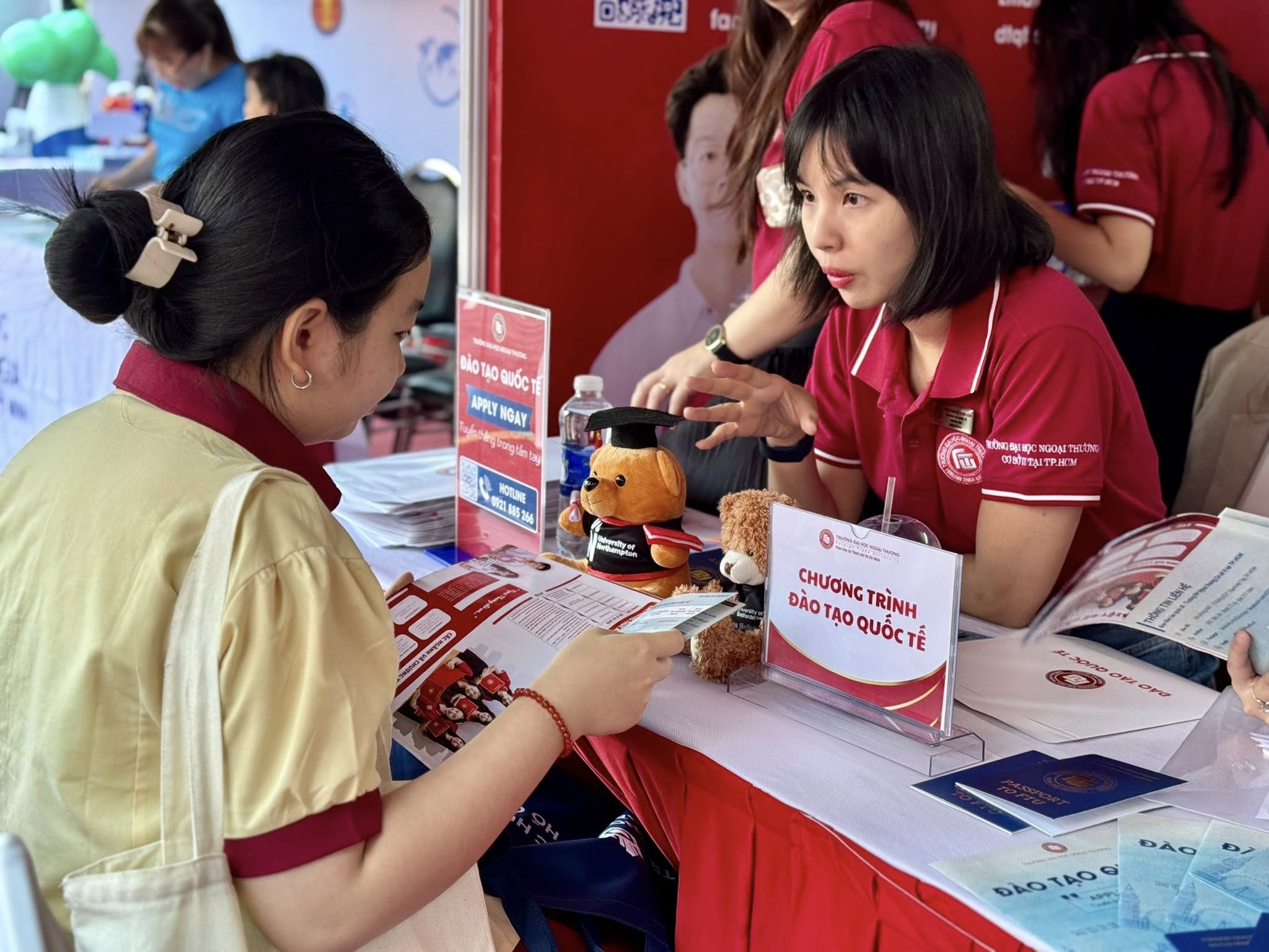 Cùng nhìn lại những hình ảnh tiêu biểu khác tại booth Đào tạo quốc tế – Phân hiệu Trường Đại học Ngoại thương tại TP.HCM trong ngày hội vừa qua.