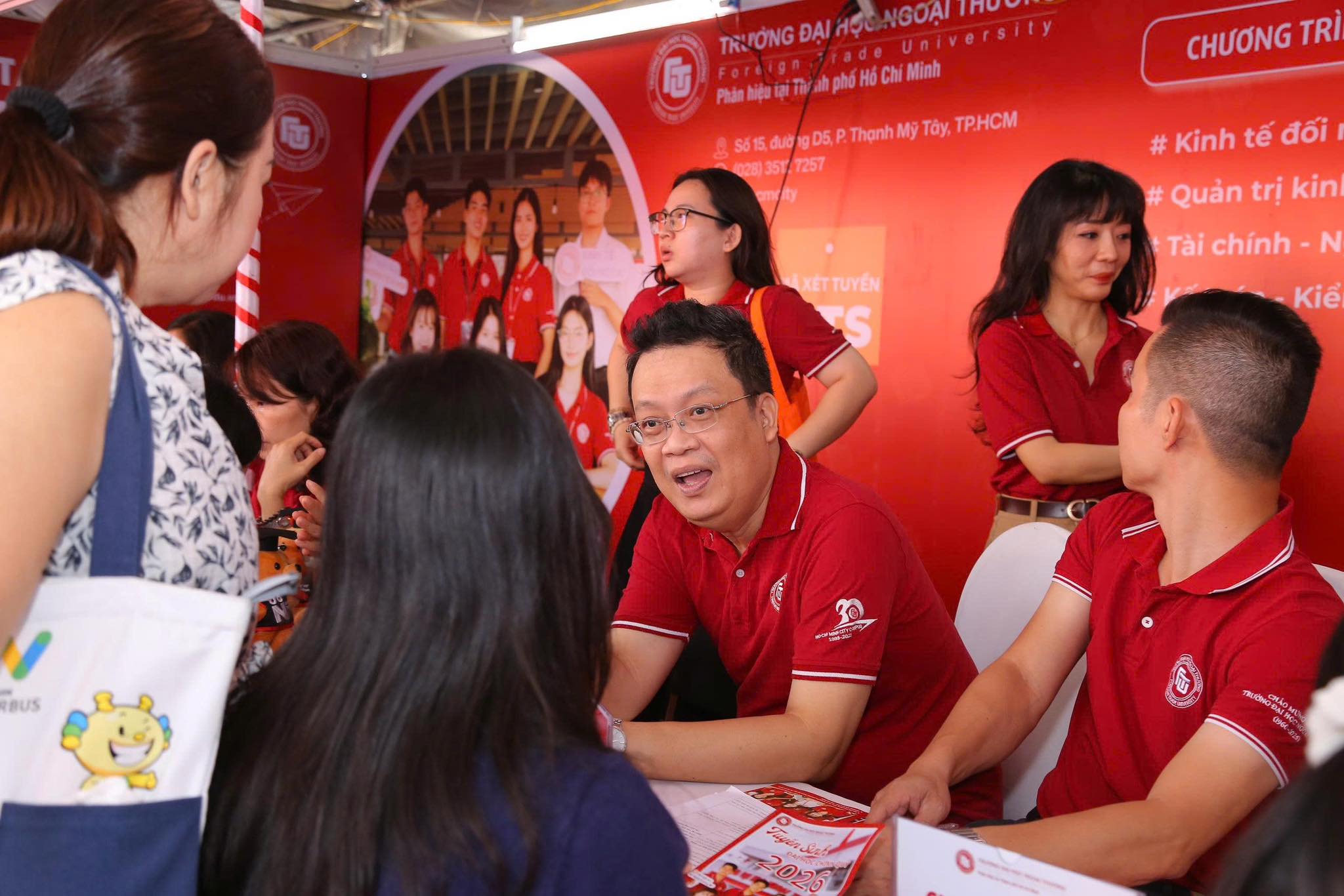 Nhằm cung cấp thông tin đầy đủ và cập nhật nhất đến quý phụ huynh và học sinh THPT, đặc biệt là các bạn chuẩn bị bước vào kỳ thi đại học quan trọng, ngày 08/03/2026 vừa qua, booth Đào tạo quốc tế (ĐTQT) – Phân hiệu Trường Đại học Ngoại thương tại TP.HCM số 30, 31, 32 đã tham gia Ngày hội Tư vấn tuyển sinh – Hướng nghiệp 2026 tại TP.HCM do Báo Tuổi Trẻ phối hợp cùng Bộ Giáo dục và Đào tạo tổ chức, diễn ra đồng thời tại TP. HCM và Hà Nội.