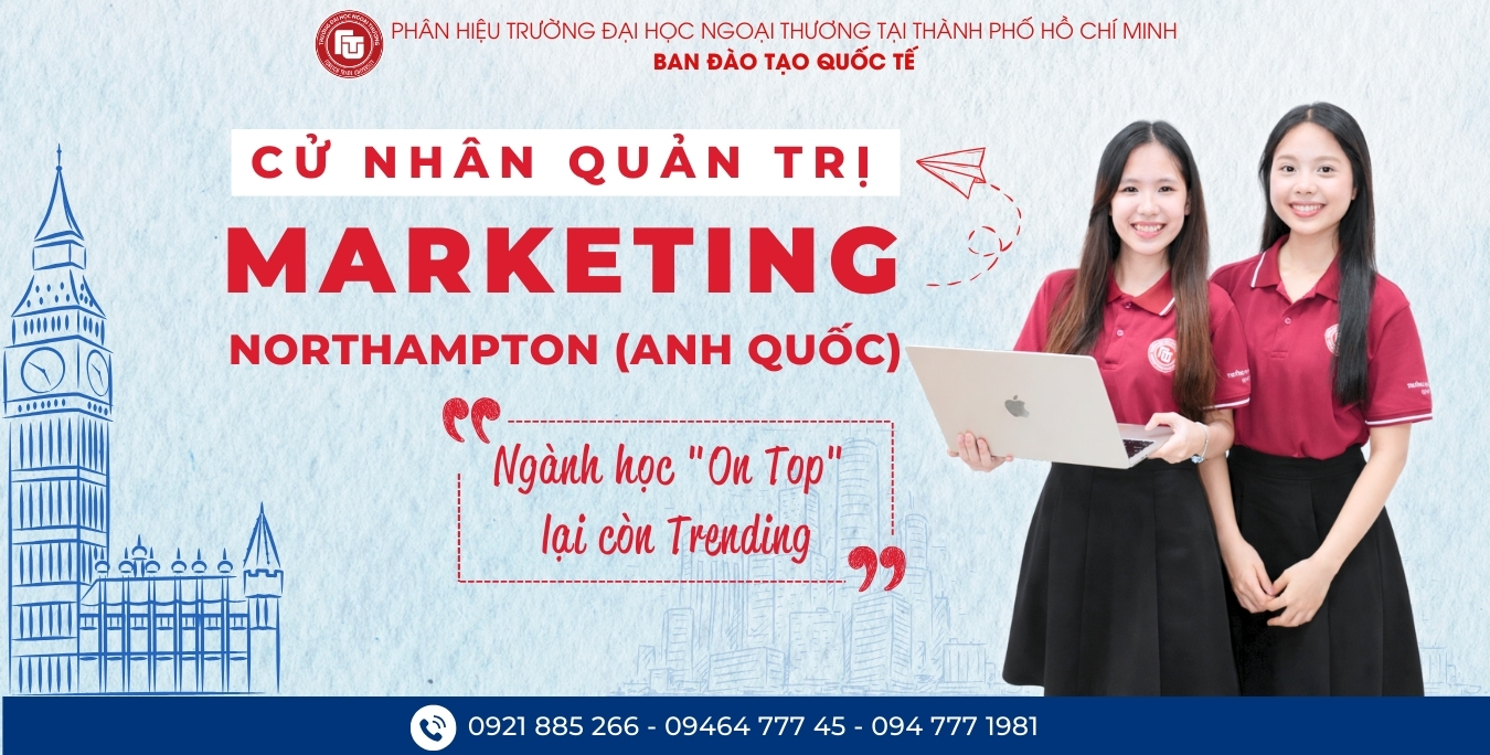Trong kỷ nguyên số, Marketing không còn chỉ là sáng tạo nội dung hay quảng bá thương hiệu, mà đã trở thành một lĩnh vực chiến lược, gắn chặt với dữ liệu, hành vi người tiêu dùng và quản trị giá trị thương hiệu toàn cầu. Chương trình Cử nhân Quản trị Marketing liên kết đào tạo giữa Trường Đại học Ngoại thương và Đại học Northampton (Vương quốc Anh) mang đến cho sinh viên Việt Nam cơ hội học tập chương trình chuẩn Anh Quốc, sở hữu bằng cử nhân quốc tế ngay tại Việt Nam hoặc chuyển tiếp du học linh hoạt.