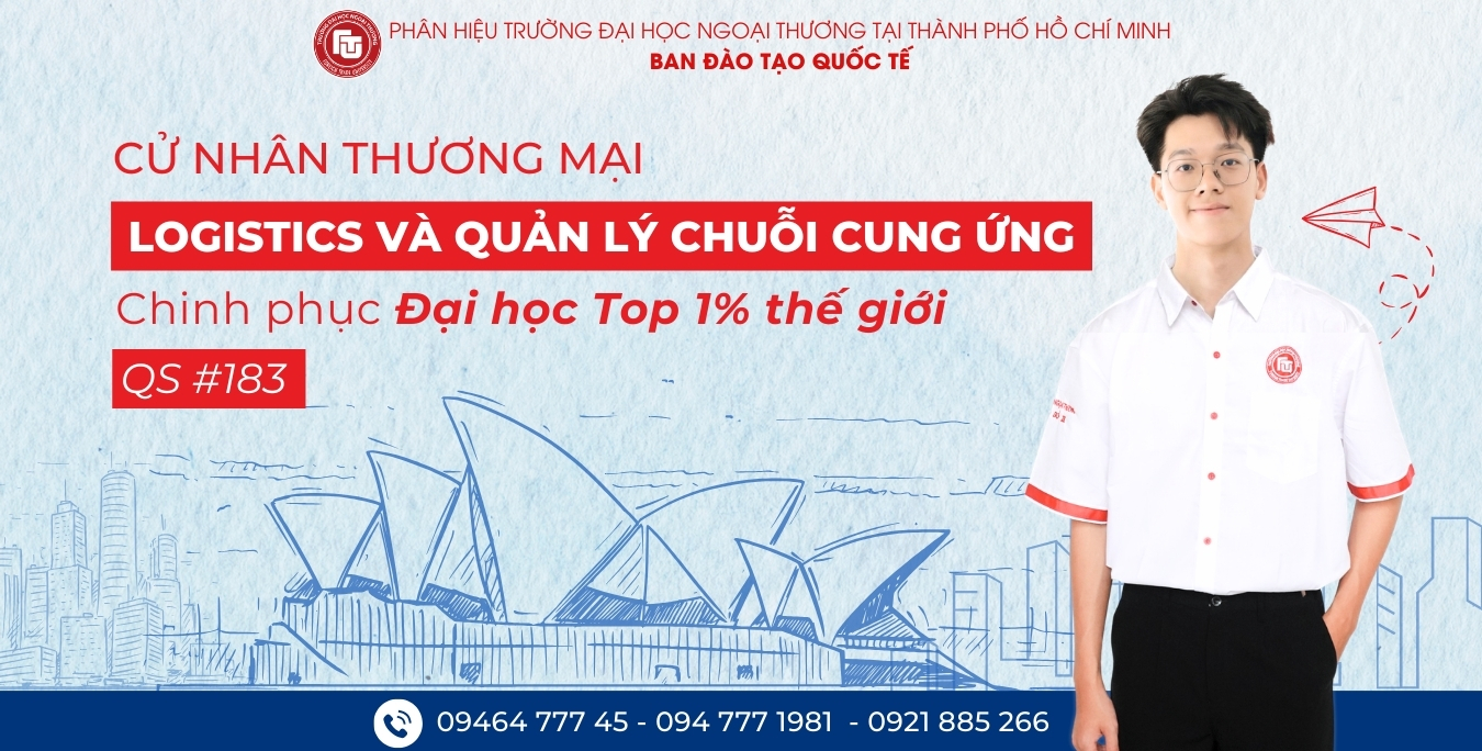 Trong bối cảnh thương mại toàn cầu và chuỗi cung ứng liên tục biến động, Logistics và Quản lý Chuỗi cung ứng đang trở thành một trong những lĩnh vực có nhu cầu nhân lực cao, thu nhập hấp dẫn và cơ hội nghề nghiệp rộng mở trên phạm vi toàn cầu. Chương trình Cử nhân Thương mại chuyên ngành Logistics và Quản lý Chuỗi cung ứng liên kết đào tạo giữa Trường Đại học Ngoại thương và Curtin University (Úc) mang đến cho sinh viên Việt Nam cơ hội tiếp cận chương trình đào tạo chuẩn Úc, bằng cấp quốc tế và lộ trình chuyển tiếp linh hoạt.
